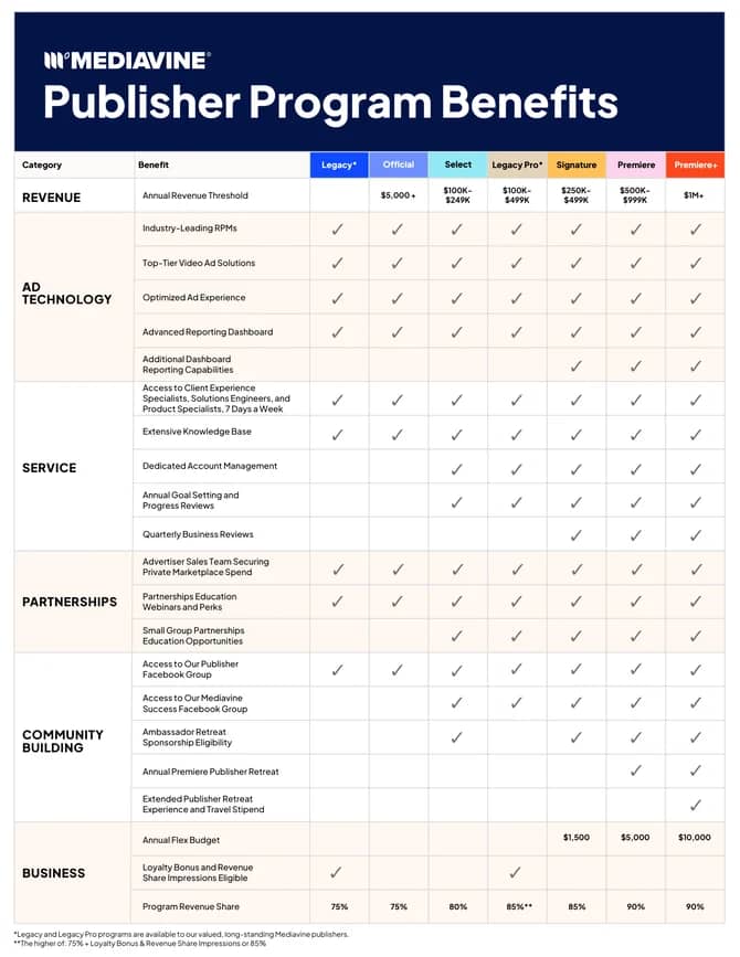 Hi Reader, In case you’ve not heard, both Raptive and Mediavine have dramatically changed their requirements recently. First came the news that you can now join Raptive ‘proper’ with just 25,000 pageviews. (It used to be 100,000 pageviews.) Read about that here >>> Raptive Drops Traffic Requirement By 75% To 25,000 Views Then came the news that Mediavine is basically changing everything! From 15th January 2026, bloggers will be able to join Mediavine Journey at just 1,000 monthly sessions. Bloggers will then be able to join Mediavine ‘proper’ when they are earning at least $5,000 per year from ad income. But that’s not all, Mediavine have also changed all the other levels... Currently, they have 2 levels above ‘normal Mediavine’: Pro & Premiere From January, there will be 4 levels above ‘normal Mediavine’, making a total of 6 levels! BUT, here’s a really important caveat: as far as I can tell, the revenue share under the new system is not as good as under the old system for any level. For example, if you are on the existing ‘pro’ tier (earning $100,000+ a year from Mediavine), you could be earning a 90% revenue share (85% + 5% for being with Mediavine for over 5 years). To get a 90% revenue share under the new system you’d have to be earning over $500,000. So, if you’ve been with Mediavine for a while, it’s almost certainly better to stay on your legacy tier than move to the new system. Thankfully, Mediavine does let you do that! Here's how the new tiers compare... Why the changes?Obviously I don’t know for sure why Raptive and Mediavine are making these changes, but I can make an educated guess that it’s about AI, shrinking pageviews, and money! These last few years have seen huge negative changes to pageviews and ad revenues for many bloggers, due the rise of AI – particularly AI Overviews and AI ‘slop’ websites, and due to a variety of ‘brutal’ Google updates, particularly the Helpful Content Update. I can only assume that this will have had a negative effect on the amount of money Mediavine and Raptive make themselves. Mediavine and Raptive are in direct competition and clearly will want to protect their own profits by getting more websites into their portfolios, so that they can make more money! And I guess right now, there’s a race to get bloggers in as early as possible. A race that right now Mediavine seems to be ahead in, with its 1,000 session entry requirement for its Journey tier. It will be interesting to see if Raptive changes again in response this, or sticks with 25,000, aiming to scoop people up before they hit the $5,000 needed for Mediavine ‘Official’. But I think Mediavine’s move towards an earnings based tier system, rather than a sessions or pageviews based system highlights something else... The huge strides in AI’s capabilities have made it harder for an ad company to tell if a site’s traffic is ‘real’ or not. (I’ve heard plenty of stories of people who have used AI to generate huge amounts of generic AI content in a few days… which has initially delivered a huge amount of traffic, before they were rumbled by Google!) But ad dollars don’t lie! By moving to an earnings based tier system, this should in theory help weed out the AI slop websites. Who knows if it will work, but it’ll be interesting to see what happens. What should you do about it?Honestly, this is a really hard one to answer right now, as there are so many variables. For example, if you have a blog that is currently getting 1,000 sessions, it might seem like a no-brainer to join Mediavine Journey… But it’s worth bearing in mind that, even if you got an RPM of $33.80 RPM (the average RPM across all major ad companies), that would mean you’d be earning a grand total of $33.80 a month. (And actually, Journey's average RPMs are much lower - just $11.50!) But it gets worse… because putting ads on your site will slow your site down and have a negative effect on UX, meaning it is likely to take even longer to grow your website to a level where you can join Mediavine ‘Official’ or Raptive. Personally, if I had a site that had only had 1,000 sessions I would not be putting ads on that site! I think there are probably two things I can say though… #1 If you have 25,000 pageviews and you really want to monetize with ads it’s *probably* a good move to join Raptive… I think for most people they will hit 25,000 pageviews, long before they get anywhere near $5,000 in revenue needed to get into Mediavine ‘Official’. (Average ad RPMs are $33.80 so 25,000 pageviews would likely deliver a monthly income of $845.) #2 If you are on a legacy tier with Mediavine, I’d have a chat with Mediavine to double check if staying on your legacy tier would be better for you (it almost certainly will be) and then just make doubly sure that they know you want to stay on your legacy tier! I think it’s also important to point out here that ads are not the only way to make money from a website, and they are consistently the WORST way to make money in RPM terms. If you want to maximize the amount you make from your blog, you’d be much better off selling your own digital products, where the RPMs are much higher. (Digital products deliver an RPM of $283.64 on average.) That means if you have a site that’s getting 25,000 pageviews, you’d likely get $845 per month from ads but $7,091 from digital products, based on industry averages. I know which I'd rather have! READ MORE >>> How to build a successful digital product business: The 7 essential ingredients that will take you to $100K and beyond! Which is best, Raptive or Mediavine?Again, this is a really hard one to answer. You’ll get people who move from one to the other and absolutely RAVE about how much their earnings have increased with their new ad company – but you can never see the counterfactual. Maybe if they had stayed with their old ad company their earnings would have gone up even